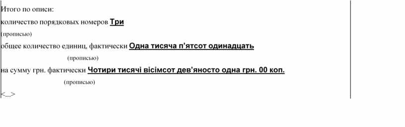 МВО в інвентаризаційному описі дають розписку в тому, що на початок інвентаризації всі прибуткові та видаткові документи на ТМЦ вони здали в бухгалтерію або передали комісії й усі цінності, що надійшли під їх відповідальність, оприбутковані, а вибулі – списані. Зазначимо, що розписка включена в заголовну частину