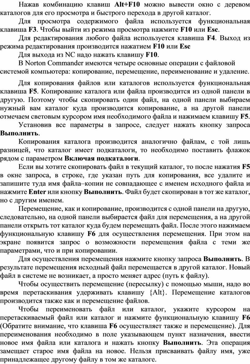 В Norton Commander имеются четыре основные операции с файловой системой компьютера: копирование, перемещение, переименование и удаление.