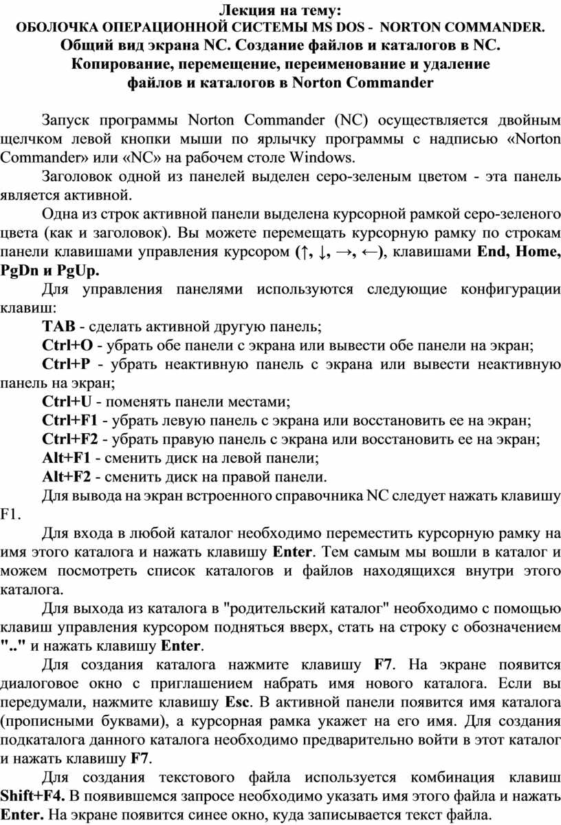 ОБОЛОЧКА ОПЕРАЦИОННОЙ СИСТЕМЫ MS DOS - NORTON COMMANDER.