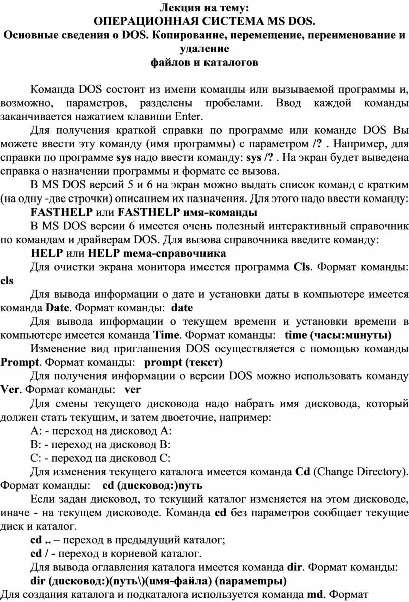 Для получения информации о версии DOS можно использовать команду Ver. Формат команды: ver