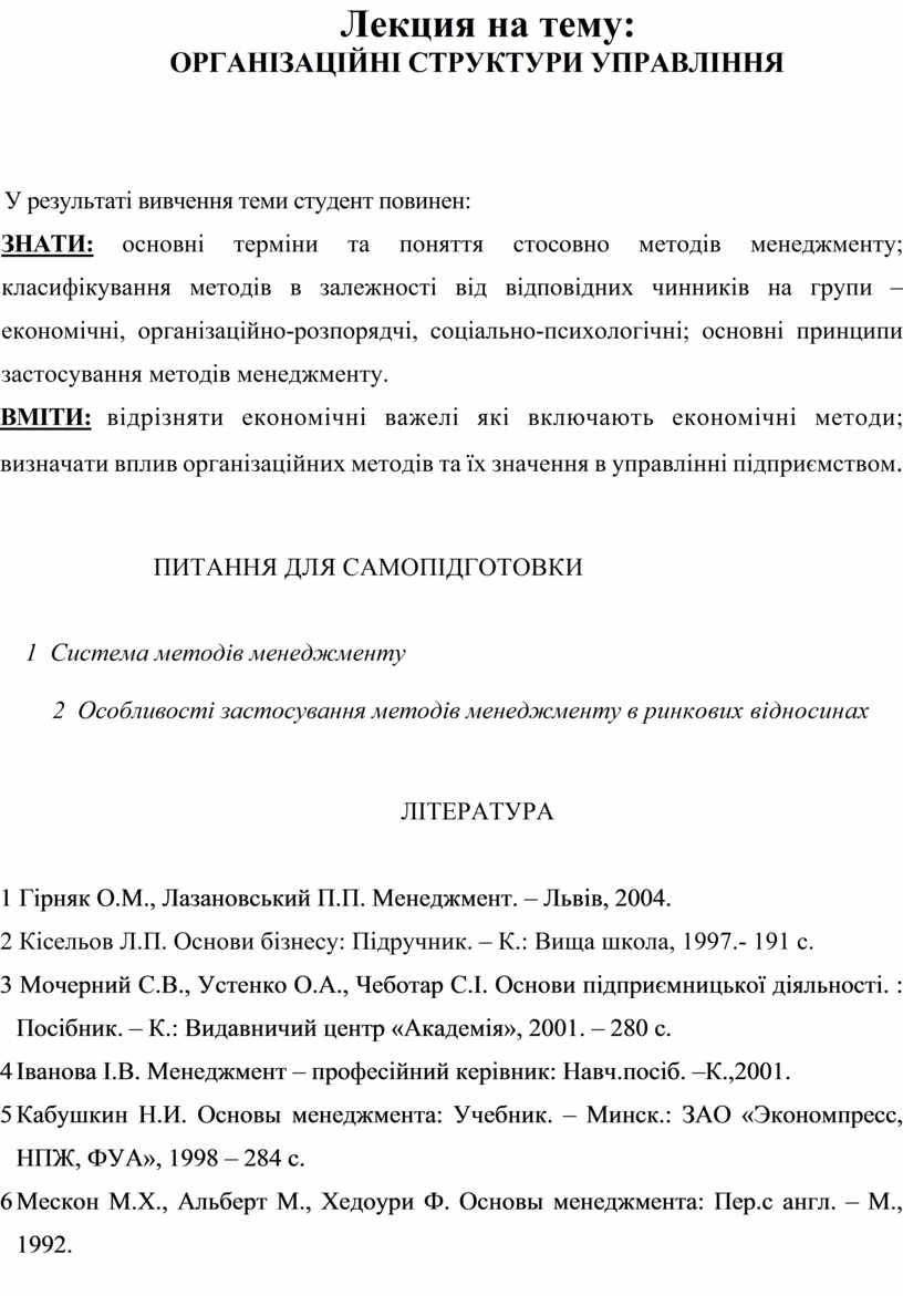 1 Гірняк О.М., Лазановський П.П. Менеджмент. – Львів, 2004.