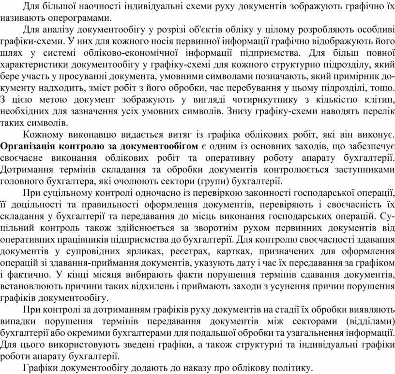 Для своєчасного виконання облікових робіт рух документів здійснюється за графіками. їх розробляє апарат бухгалтерії під керівництвом головного бухгалтера. Він встановлює персональну відповідальність бухгалтерів за дотримання термінів виконання облікових робіт. Форма графіків документообігу, порядок їх складання і обсяги показників визначаються підприємством самостійно.