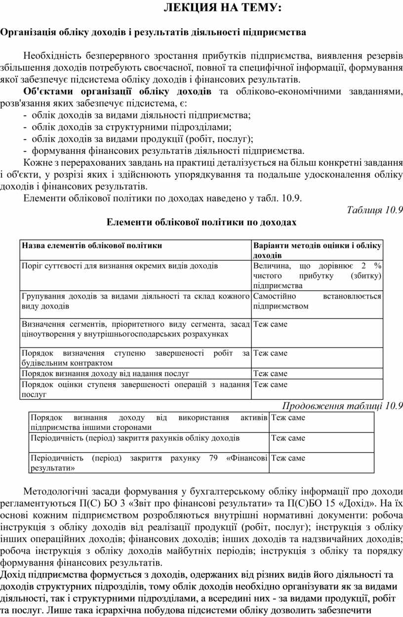 Елементи облікової політики по доходах наведено у табл. 10.9.
