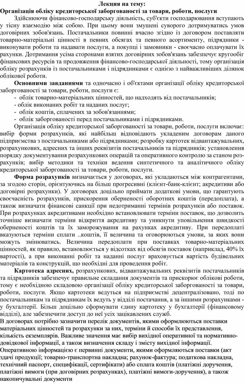 Організація обліку кредиторської заборгованості за товари, роботи, послуги