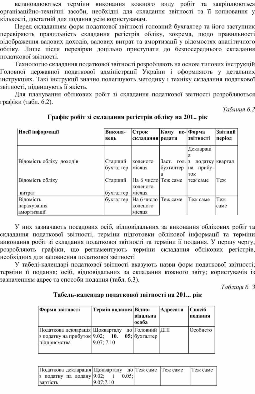 Для планування облікових робіт зі складання податкової звітності розробляються графіки (табл. 6.2).