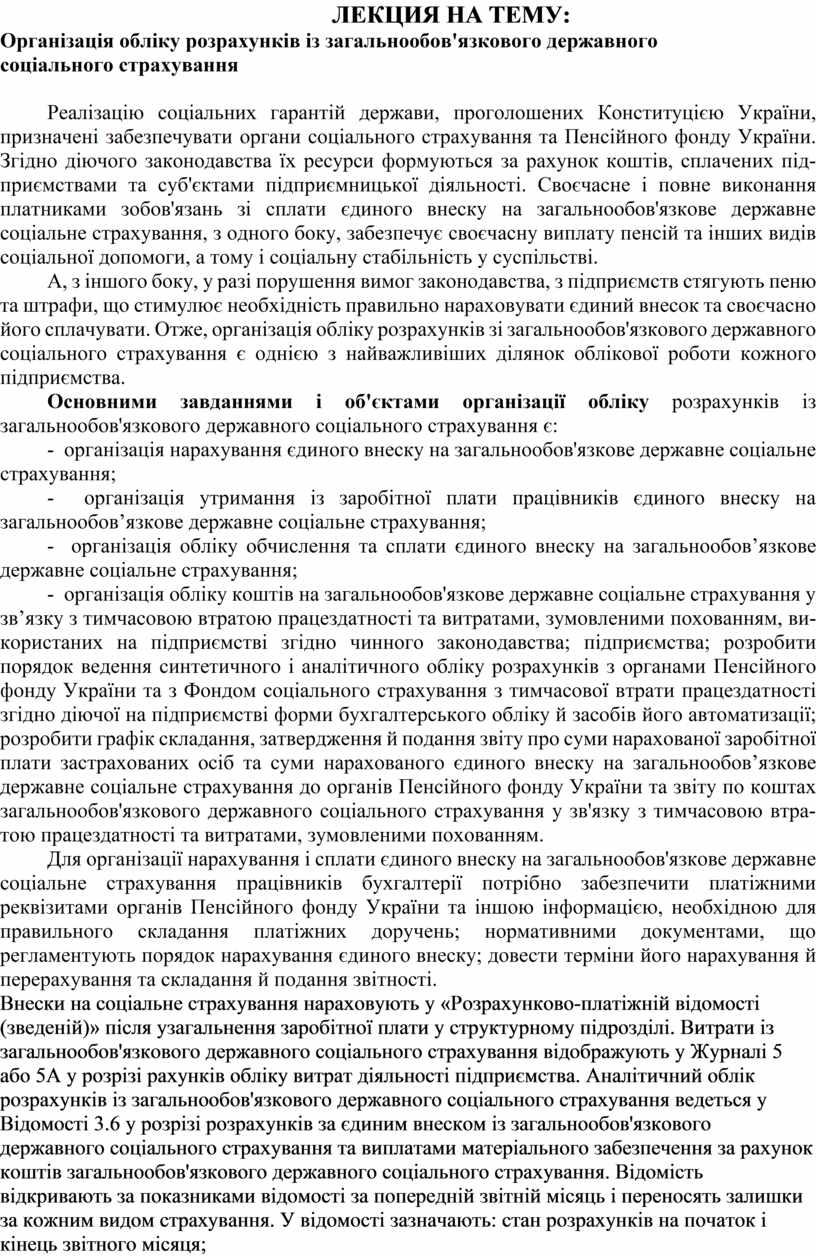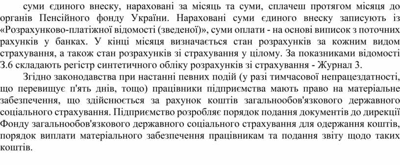 А, з іншого боку, у разі порушення вимог законодавства, з підприємств стягують пеню та штрафи, що стимулює необхідність правильно нараховувати єдиний внесок та своєчасно його сплачувати. Отже, організація обліку розрахунків зі загальнообов'язкового державного соціального страхування є однією з найважливіших ділянок облікової роботи кожного підприємства.