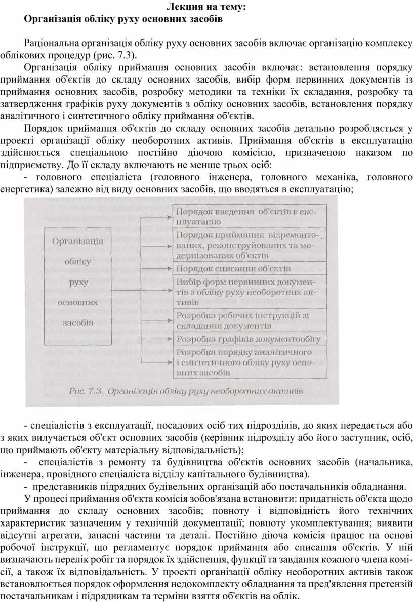 Раціональна організація обліку руху основних засобів включає організацію комплексу облікових процедур (рис. 7.3).