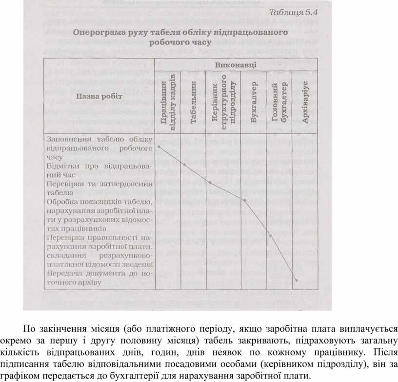 Для забезпечення своєчасного нарахування заробітної плати рух табелю обліку відпрацьованого робочого часу організують суворо за графіком (табл. 5.4).