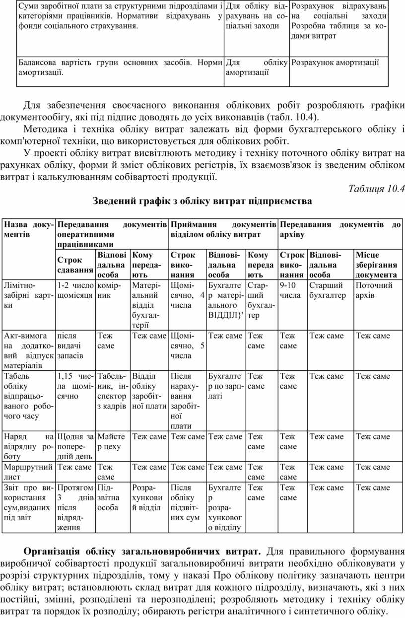 Для забезпечення своєчасного виконання облікових робіт розробляють графіки документообігу, які під підпис доводять до усіх виконавців (табл. 10.4).