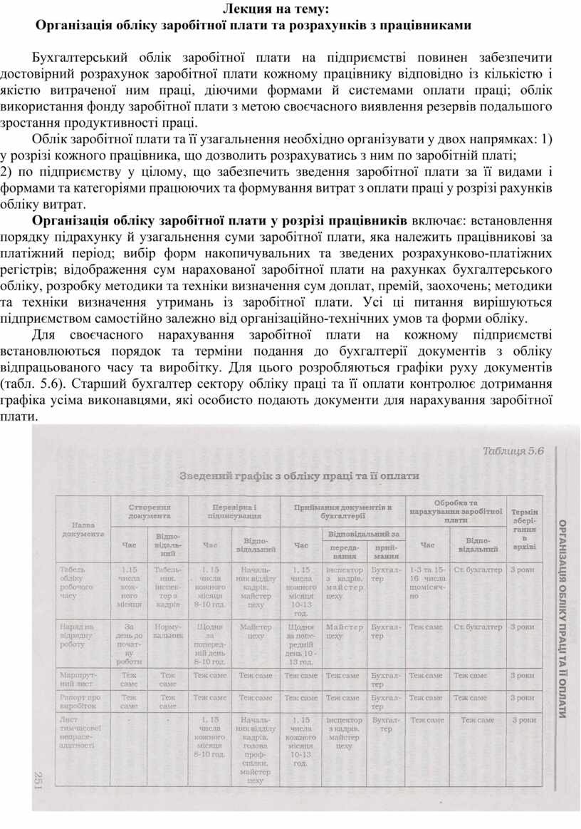 Для своєчасного нарахування заробітної плати на кожному підприємстві встановлюються порядок та терміни подання до бухгалтерії документів з обліку відпрацьованого часу та виробітку. Для цього розробляються графіки руху документів (табл. 5.6). Старший бухгалтер сектору обліку праці та її оплати контролює дотримання графіка усіма виконавцями, які особисто подають документи для нарахування заробітної плати.