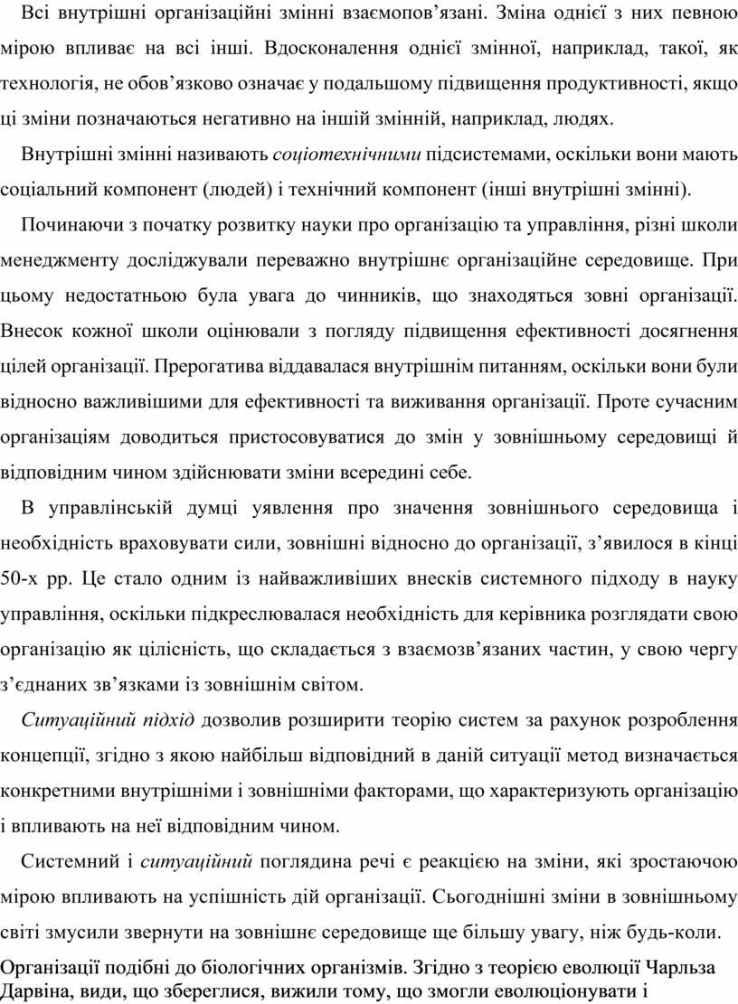 Системний і ситуаційний поглядина речі є реакцією на зміни, які зростаючою мірою впливають на успішність дій організації. Сьогоднішні зміни в зовнішньому світі змусили звернути на зовнішнє середовище ще більшу увагу, ніж будь-коли.