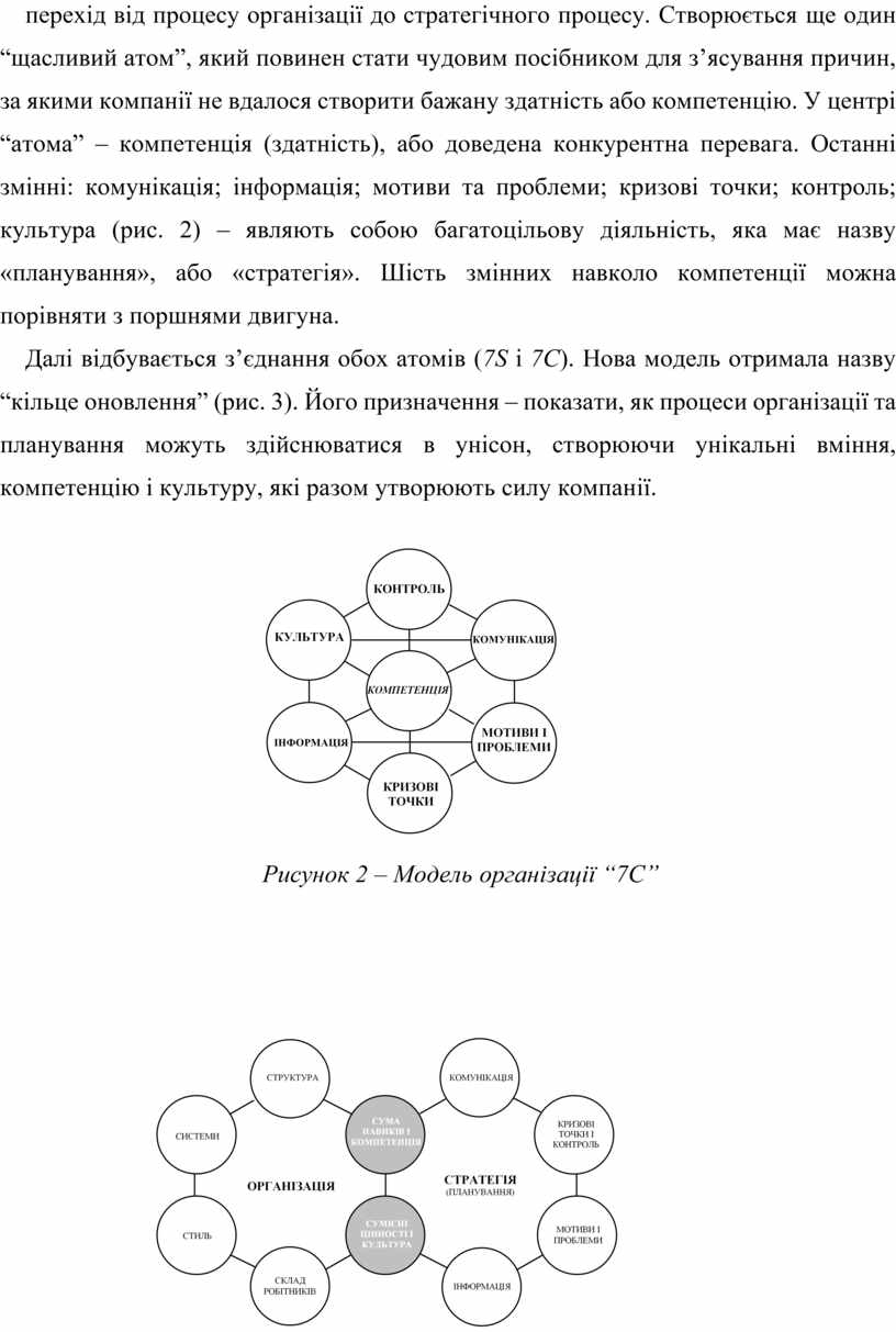 Далі відбувається з’єднання обох атомів (7S і 7C). Нова модель отримала назву “кільце оновлення” (рис. 3). Його призначення – показати, як процеси організації та планування можуть здійснюватися в унісон, створюючи унікальні вміння, компетенцію і культуру, які разом утворюють силу компанії.