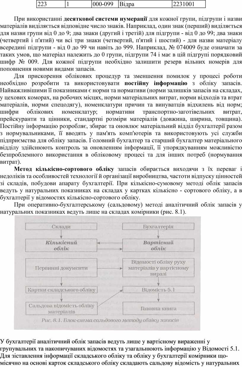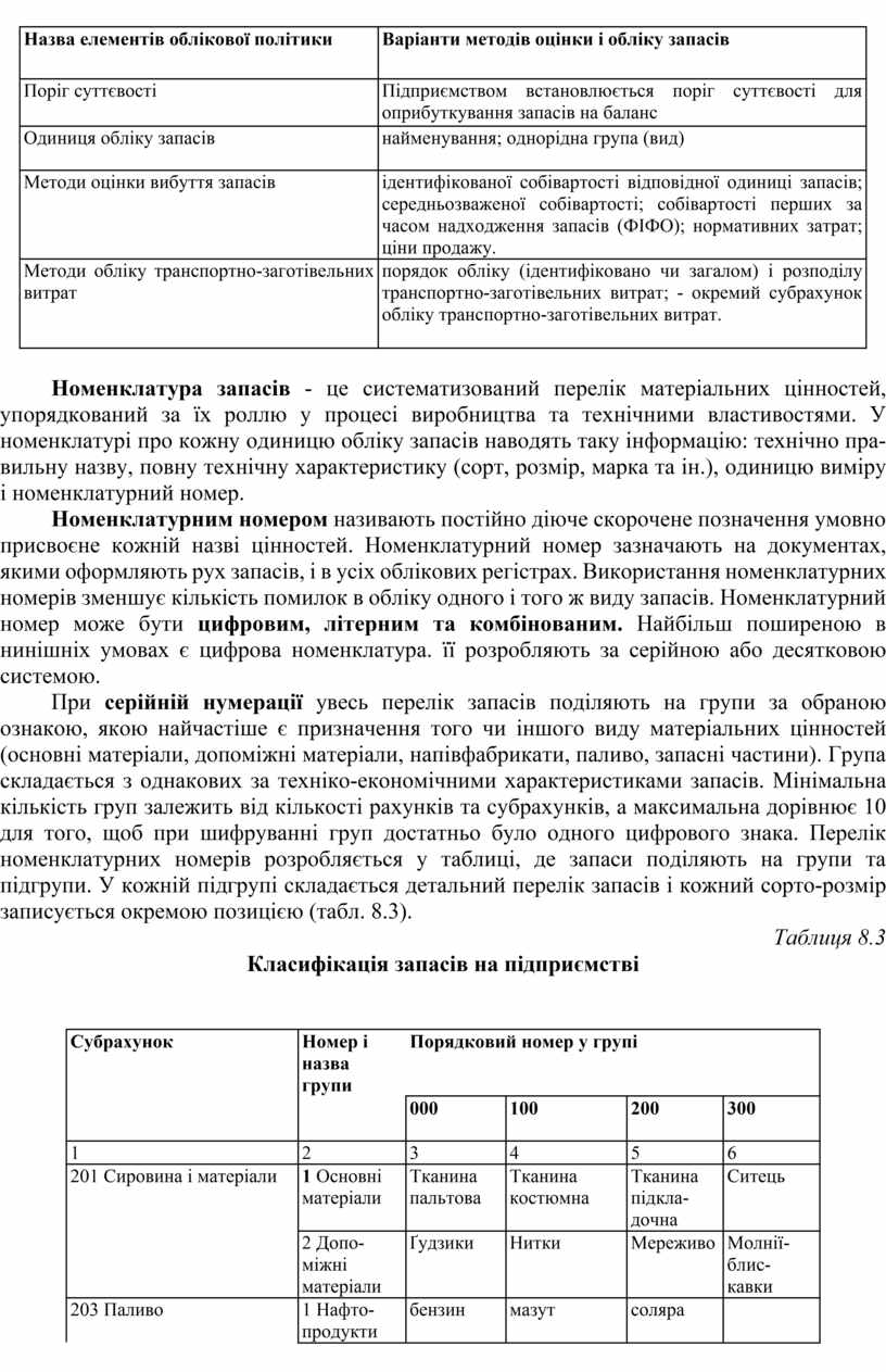 Для організації обліку запасів розробляється проект, який регламентує конкретизує засади обліку у певних умовах функціонування підприємства (табл. 8.1).