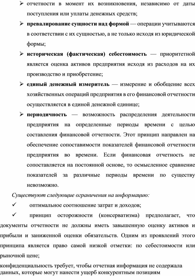 Ø непрерывность — оценка активов и обязательств предприятия осуществляется исходя из предположения, что его деятельность будет продолжаться далее;