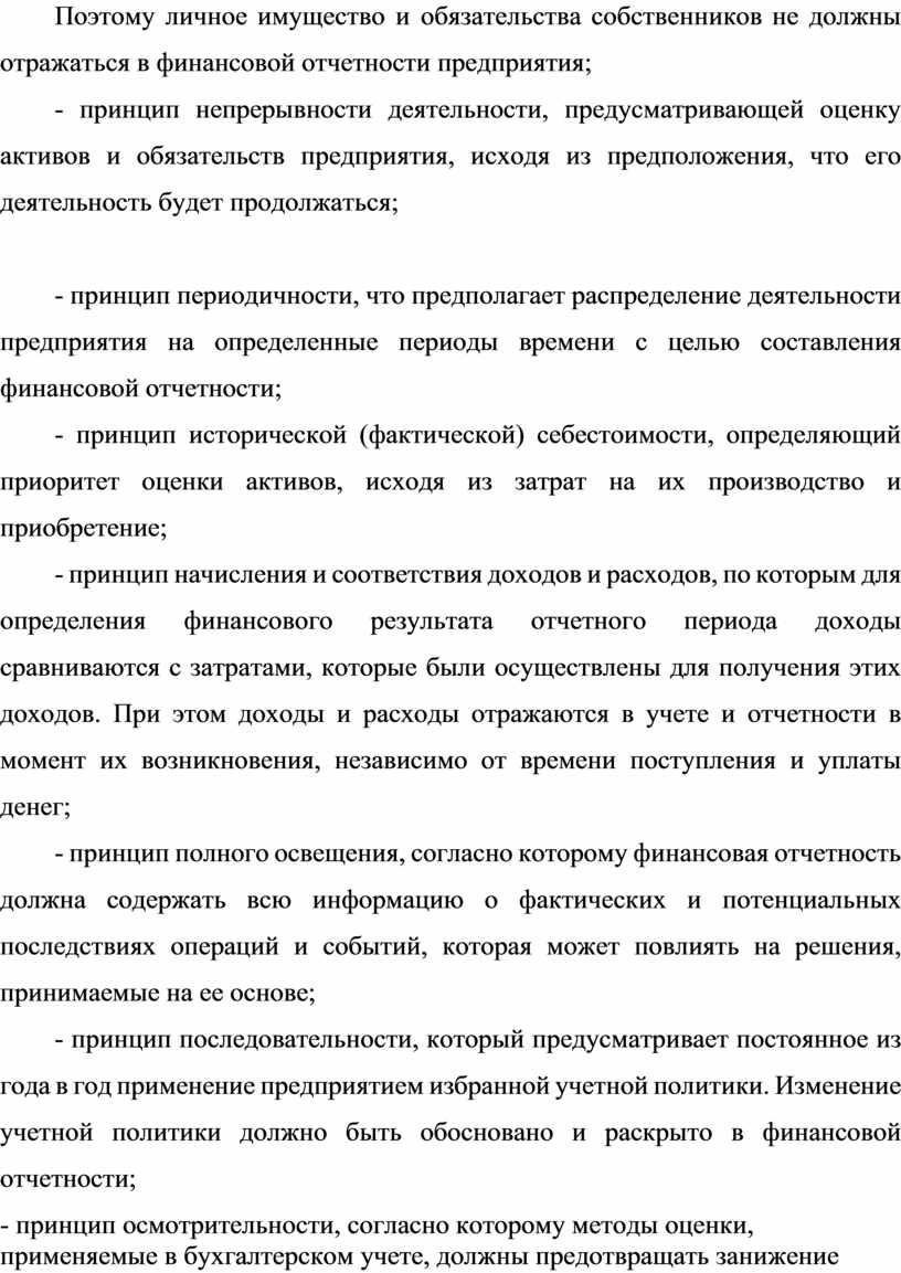 - принцип непрерывности деятельности, предусматривающей оценку активов и обязательств предприятия, исходя из предположения, что его деятельность будет продолжаться;