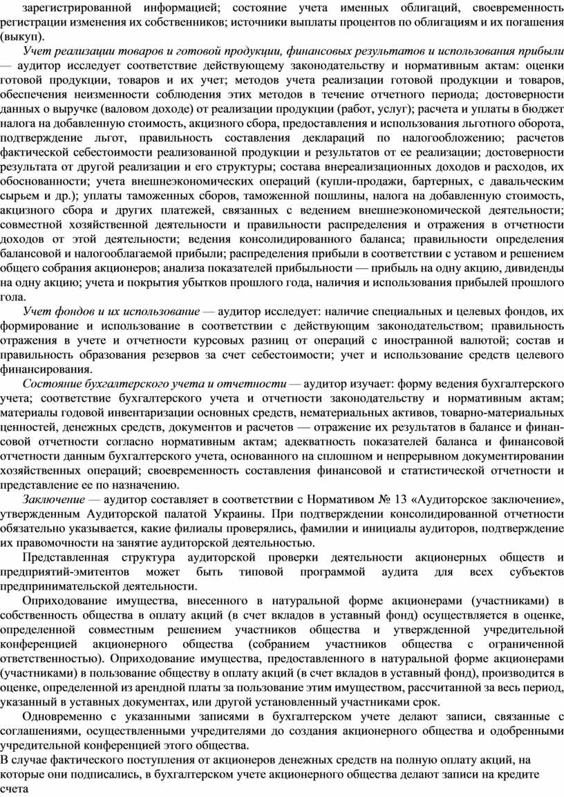 Представленная структура аудиторской проверки деятельности акционерных обществ и предприятий-эмитентов может быть типовой программой аудита для всех субъектов предпринимательской деятельности.