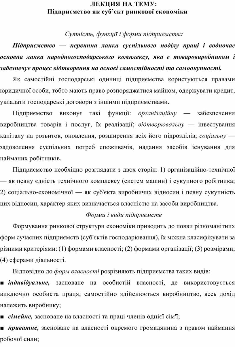 ■ приватне, засноване на власності окремого громадянина з правом наймання робочої сили;