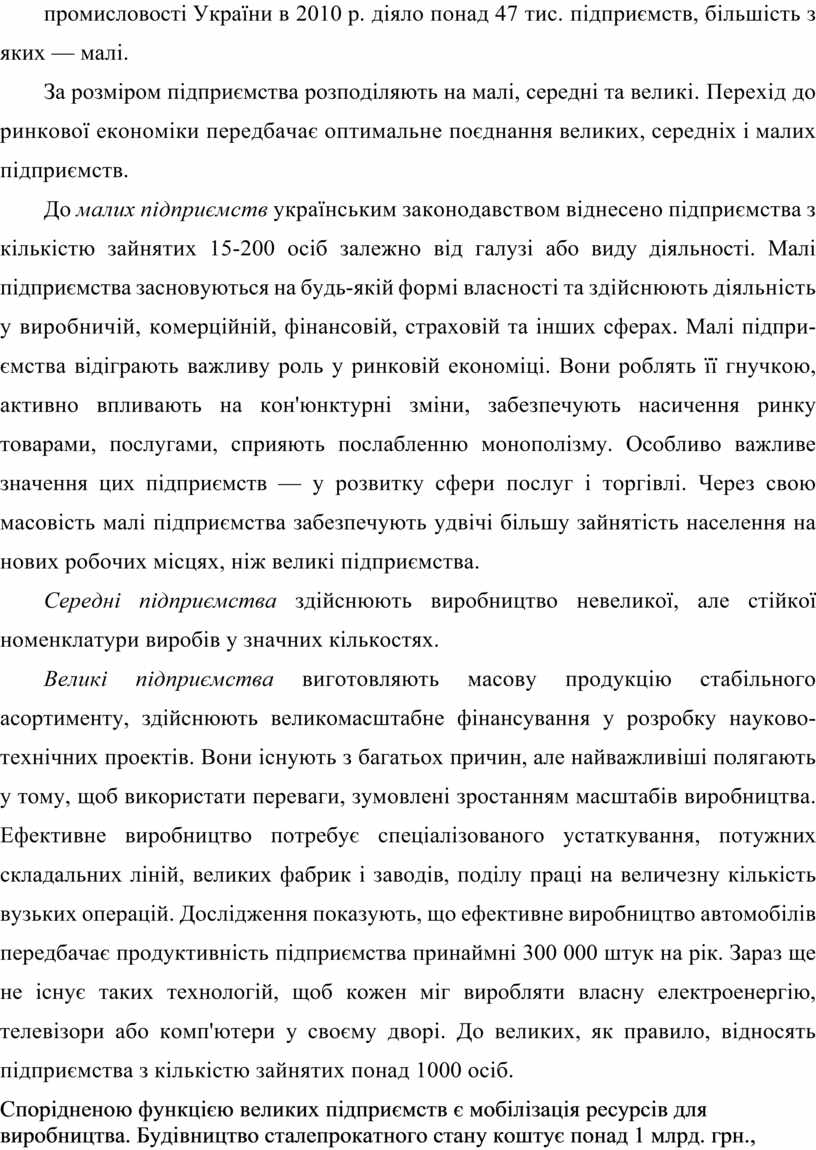 Проте майже в усіх галузях поряд з великими підприємствами є технологічні й економічні можливості для існування середніх, малих і навіть мініатюрних підприємств.