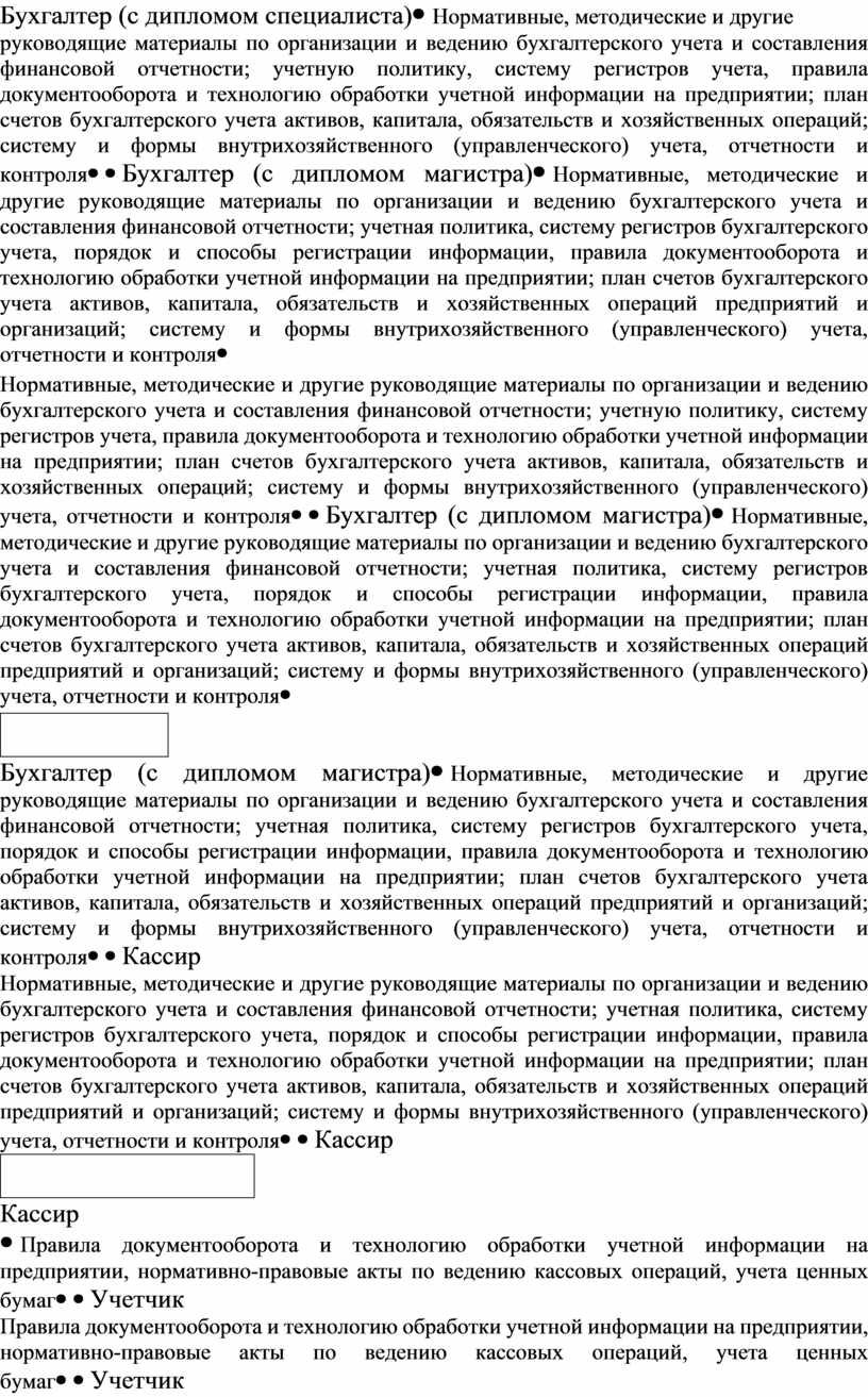 Таблица 1 - Требования к знаниям учетных работников согласно справочнику квалификационных характеристик профессий работников