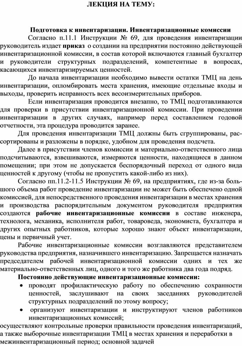 Подготовка к инвентаризации. Инвентаризационные комиссии
