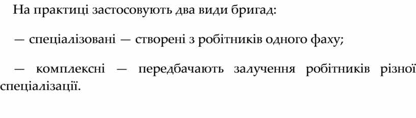 З-поміж колективних форм кооперації праці провідне місце посідають групові форми, зокрема, виробничі бригади.