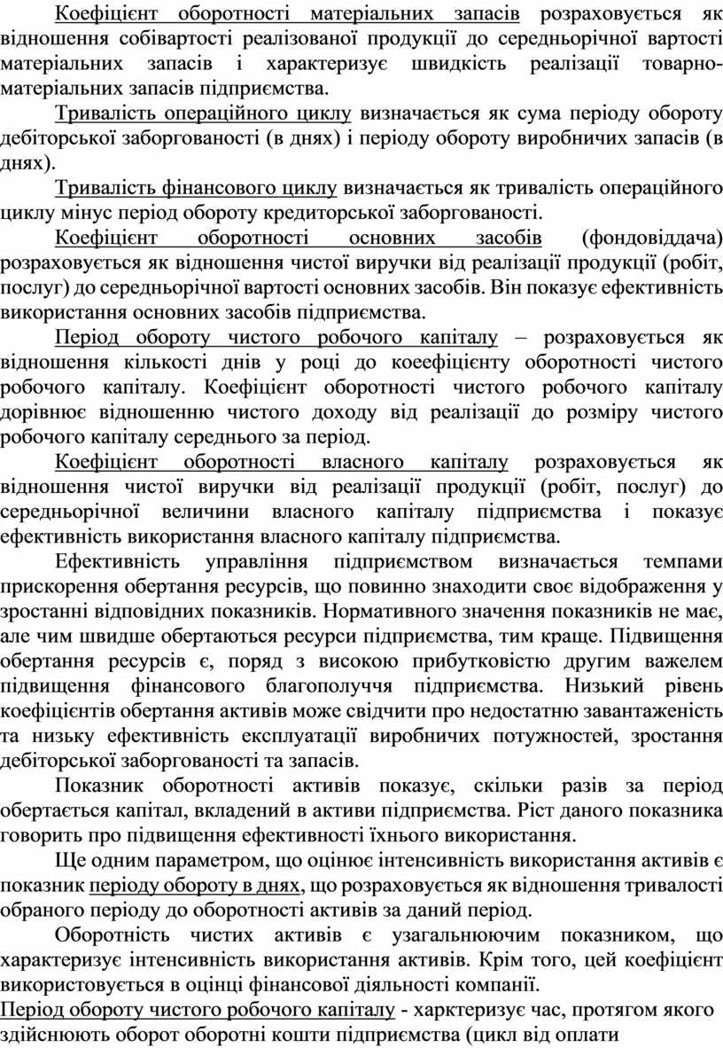 Чим швидше обертаються ресурси підприємства, тим менший обсяг їх потрвібен для здійснення операційної діяльності і тим еефктивніше діяльність підприємства.