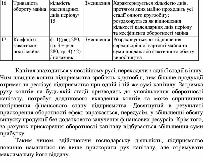 Таким чином, здійснюючи господарську діяльність, підприємство повинно намагатися не лише прискорити рух капіталу, але отримувати максимальну його віддачу.