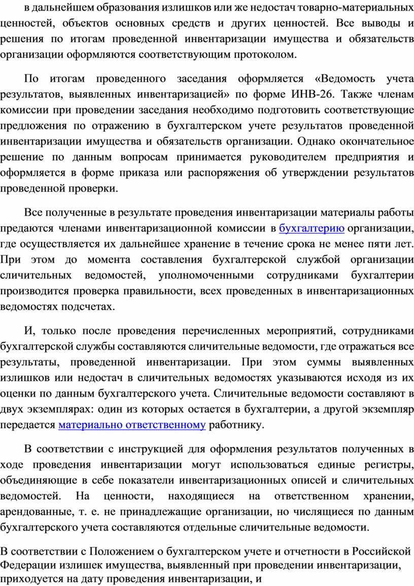 Порядок оформления результатов инвентаризации