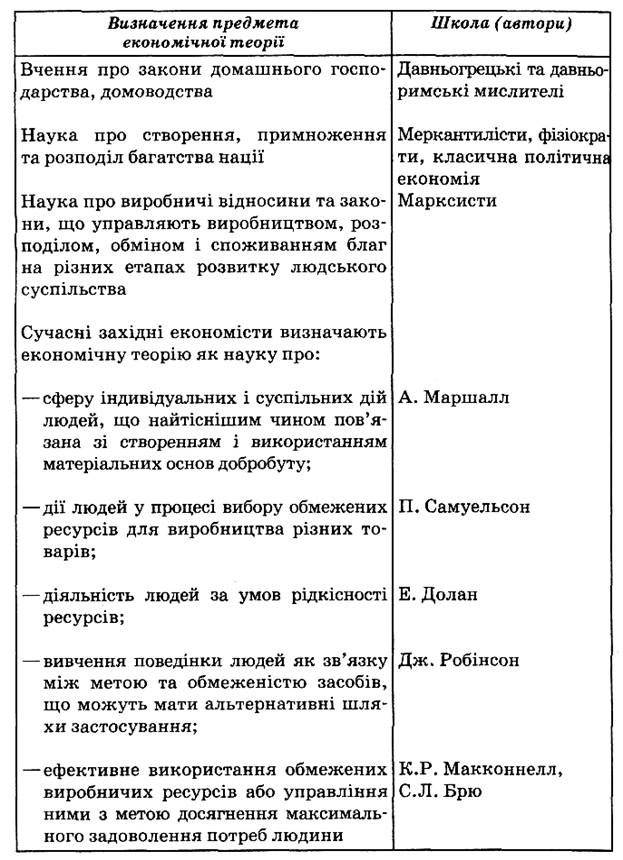 Предмет економічної теорії та еволюція у його визначенні різними школами
