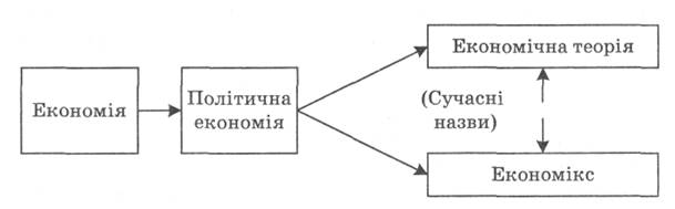 Разом з еволюцією визначення предмета еволюціонувала і назва економічної науки (рис. 2).