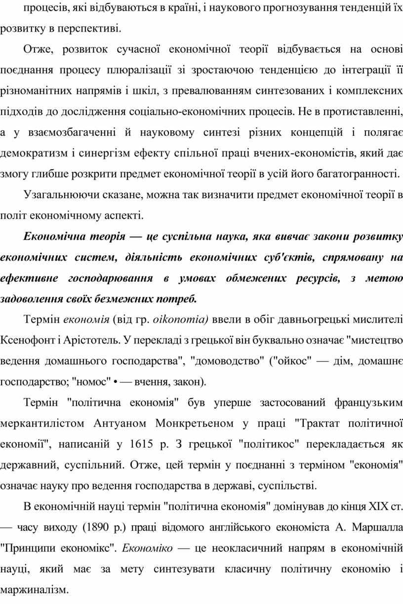 Узагальнюючи сказане, можна так визначити предмет економічної теорії в політ економічному аспекті.