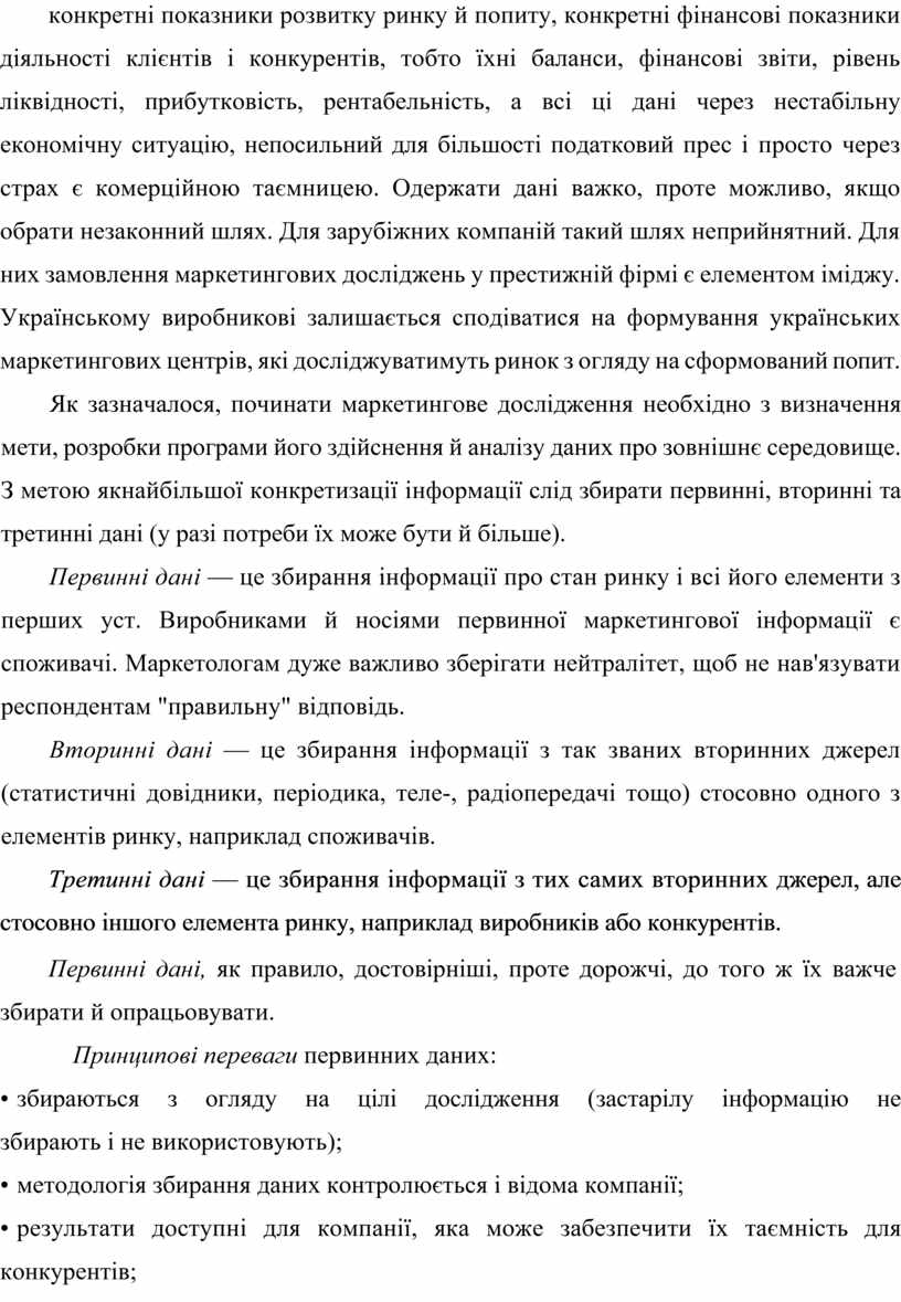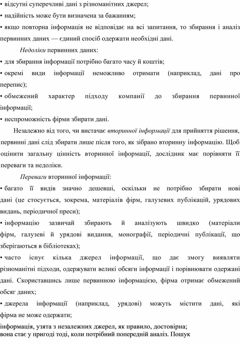 і порівнювати одержані дані. Скориставшись лише первинною інформацією, фірма отримає обмежений обсяг даних;