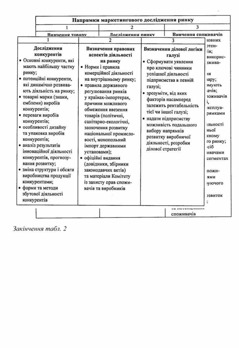 Напрямки маркетингового дослідження ринку ілюструє табл. .2