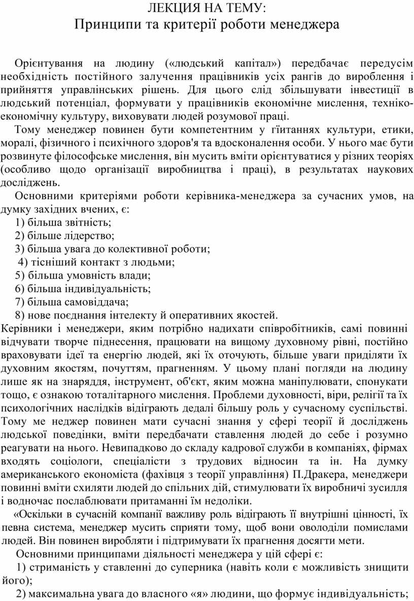 Основними критеріями роботи керівника-менеджера за сучасних умов, на думку західних вчених, є: