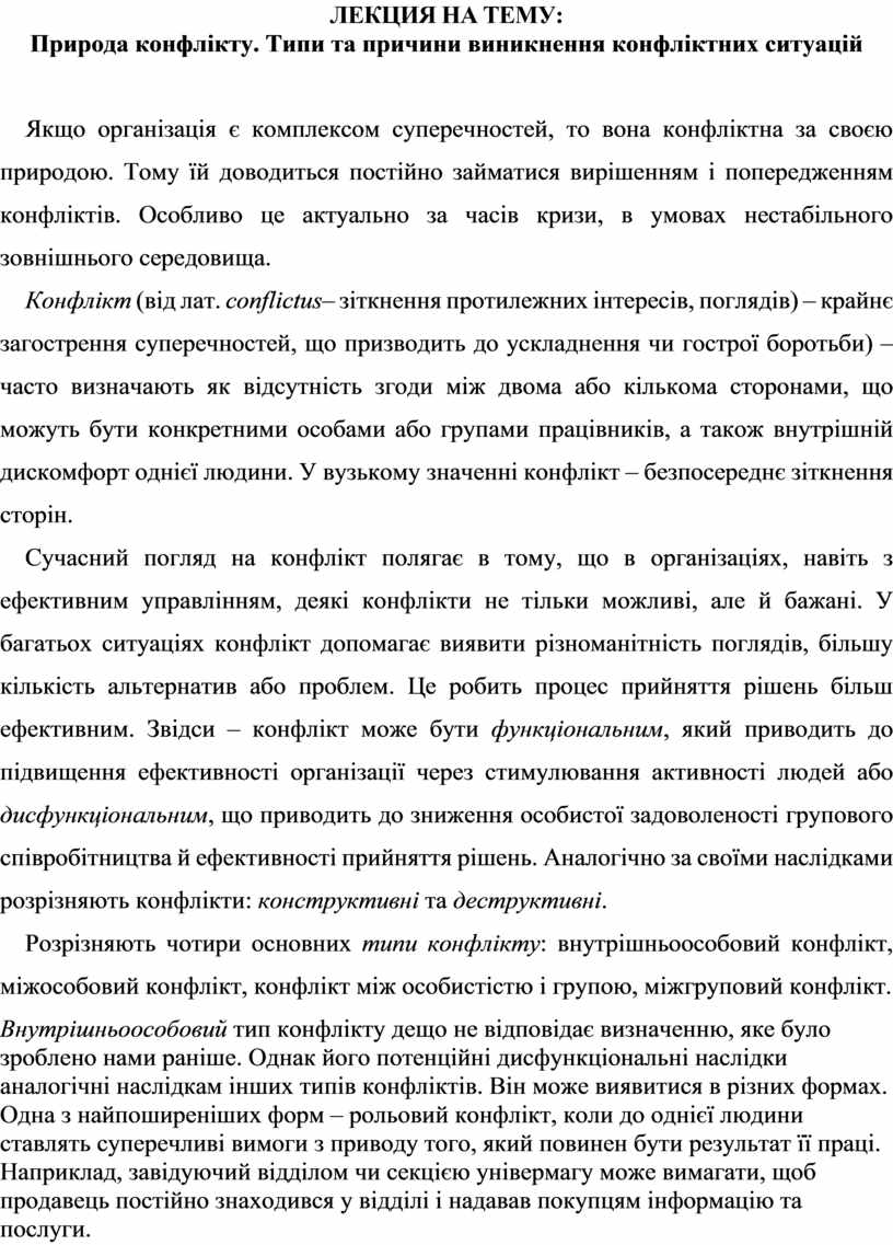Природа конфлікту. Типи та причини виникнення конфліктних ситуацій