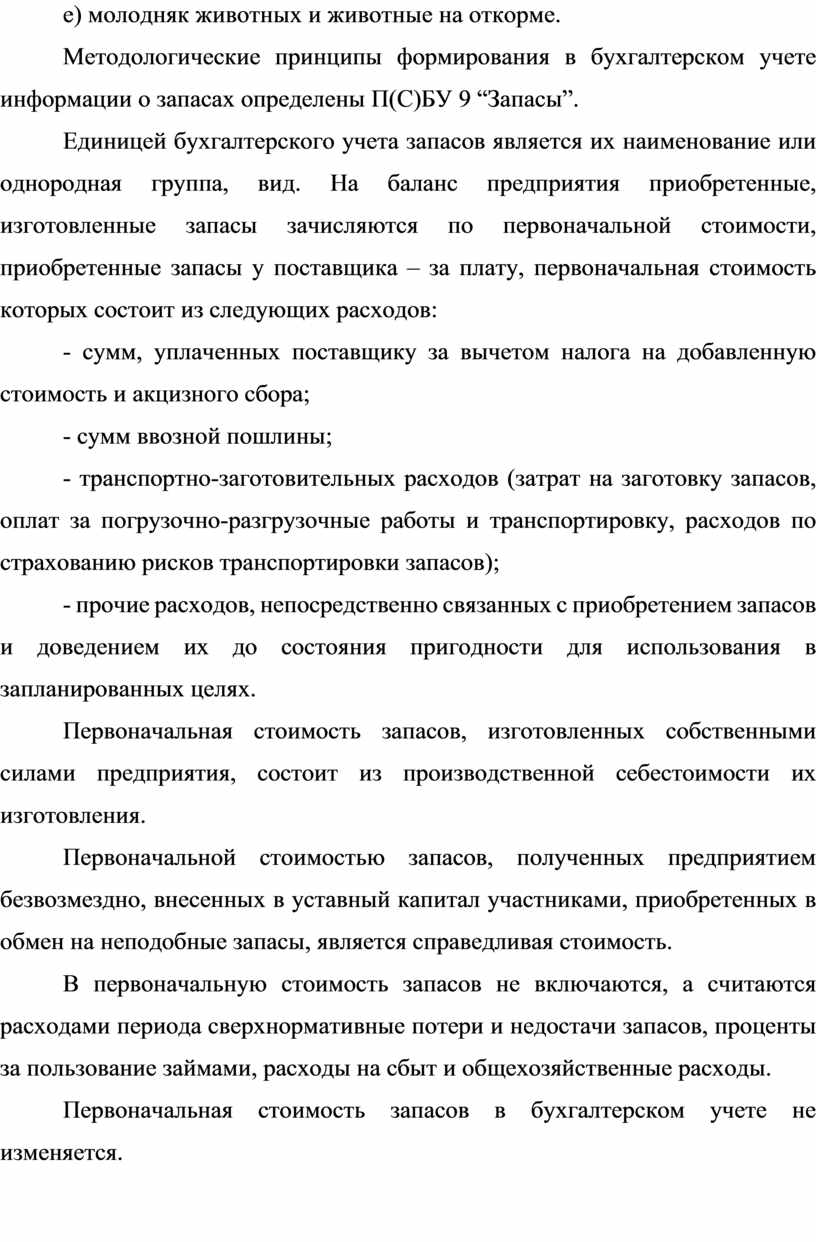 Методологические принципы формирования в бухгалтерском учете информации о запасах определены П(С)БУ 9 “Запасы”.