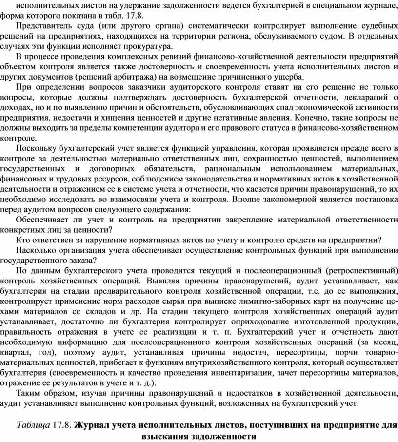 Таблица 17.8. Журнал учета исполнительных листов, поступивших на предприятие для взыскания задолженности