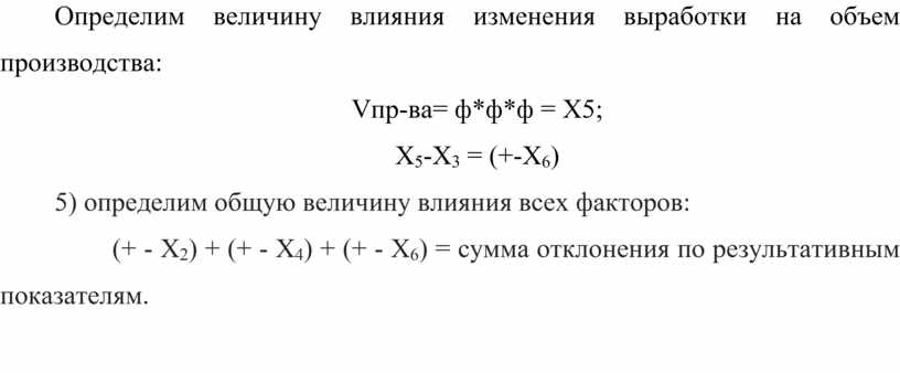5)определим величину влияния всех факторов на объем производства:
