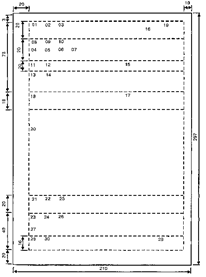 На рисунках цифрами от 01 до 30 обозначены реквизиты в границах зон, очерченных штриховыми линиями[1]. Использование штриховых линий символизирует возможность некоторого перемещения реквизитов в площади формата. Такие перемещения в основном связаны с колебаниями числа строк текста документа (реквизит 20), что влечет за собой перемещение границ реквизитов 21, 22, 25, а также реквизитов 23, 24, 26, 27.