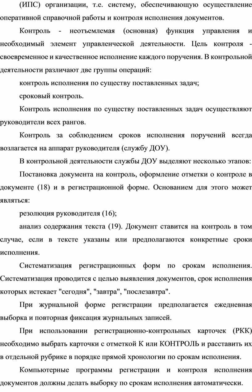 анализ содержания текста (19). Документ ставится на контроль в том случае, если в тексте указаны или предполагаются конкретные сроки исполнения.
