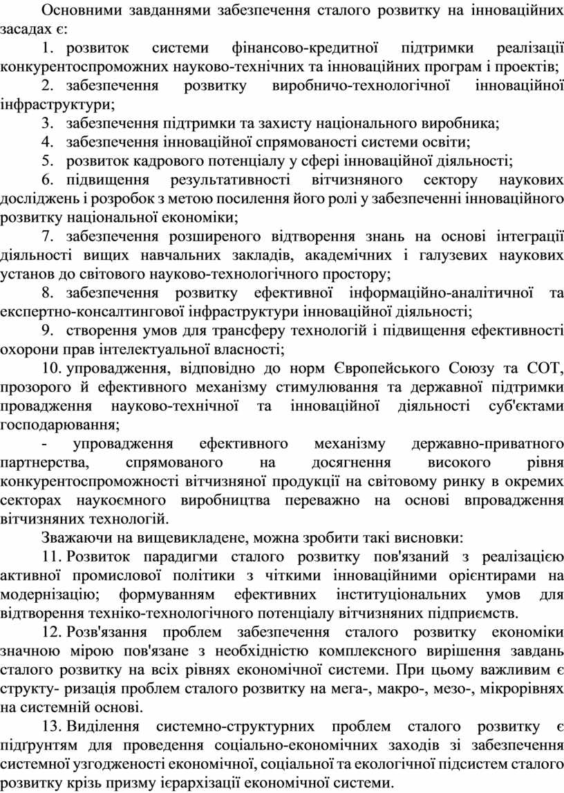 20. Розвиток парадигми сталого розвитку пов'язаний з реалізацією активної промислової політики з чіткими інноваційними орієнтирами на модернізацію; формуванням ефективних інституціональних умов для відтворення техніко-технологічного потенціалу вітчизняних підприємств.