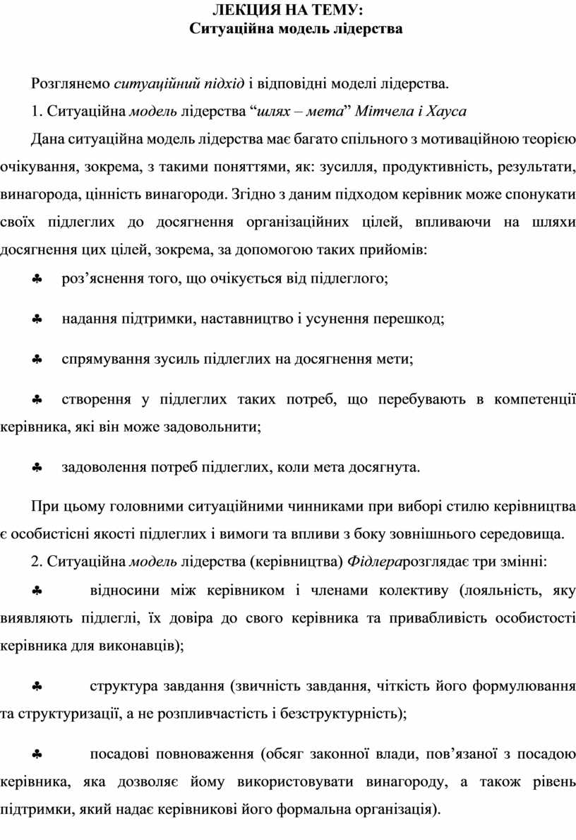 1. Ситуаційна модель лідерства “шлях – мета” Мітчела і Хауса
