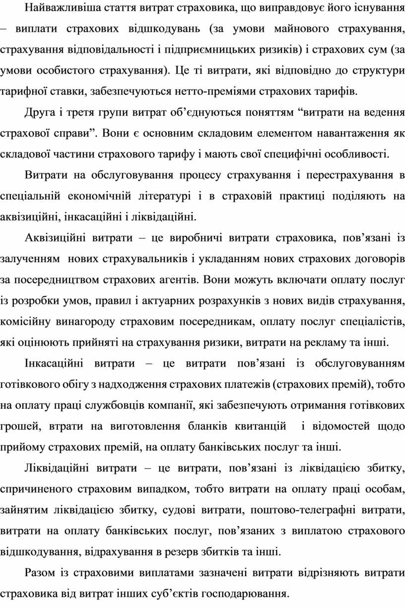 Разом із страховими виплатами зазначені витрати відрізняють витрати страховика від витрат інших суб’єктів господарювання.