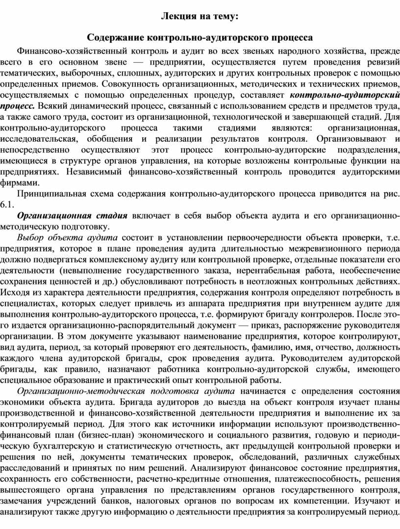 Принципиальная схема содержания контрольно-аудиторского процесса приводится на рис. 6.1.
