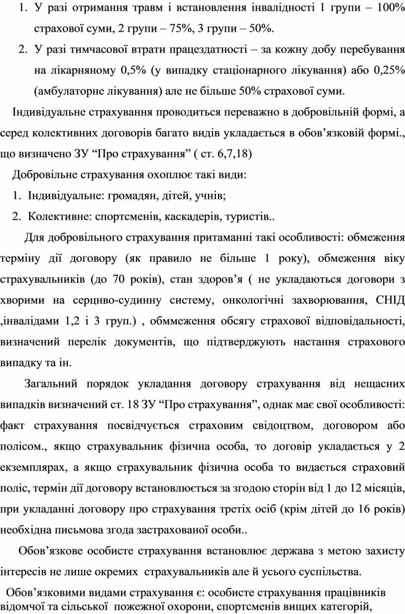 Індивідуальне страхування проводиться переважно в добровільній формі, а серед колективних договорів багато видів укладається в обов’язковій формі., що визначено ЗУ “Про страхування” ( ст. 6,7,18)