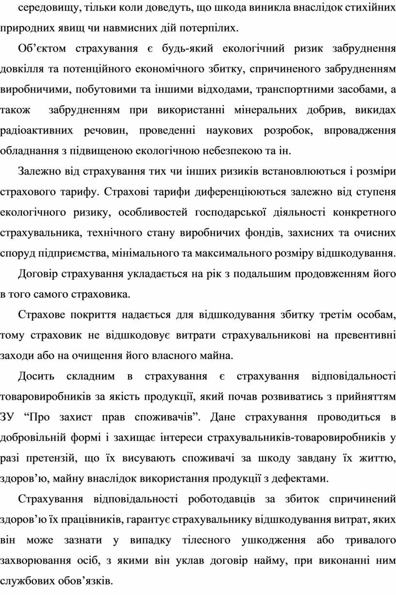 Страхування відповідальності за нанесення екологічних збитків. Та інші види страхування відповідальності.