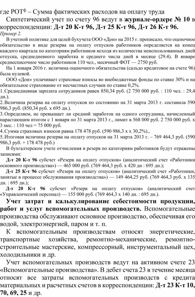 где % О – процент ежемесячных отчислений в резерв; От – предполагаемая сумма отпускных за год с учетом страховых взносов; РОТп – предполагаемая годовая сумма расходов на оплату труда персонала организации с учетом страховых взносов.