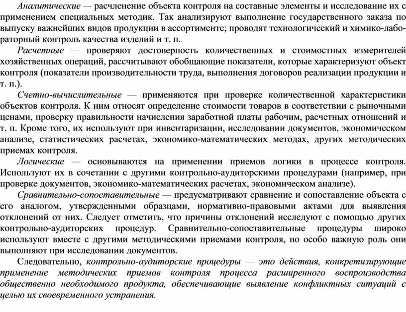 Сущность и содержание методических приемов и контрольно-аудиторских процедур