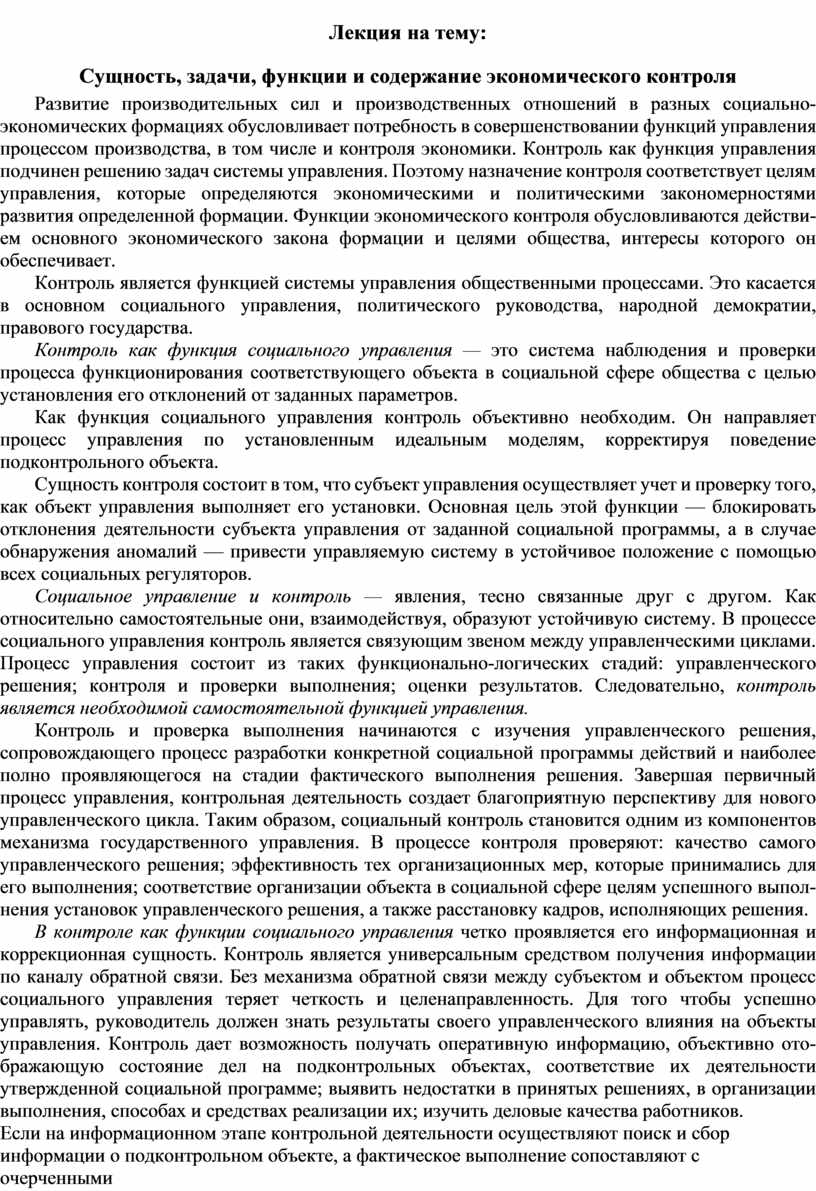 Сущность, задачи, функции и содержание экономического контроля