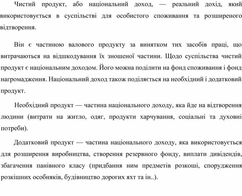 Чистий продукт, або національний доход, — реальний дохід, який використовується в суспільстві для особистого споживання та розширеного відтворення.